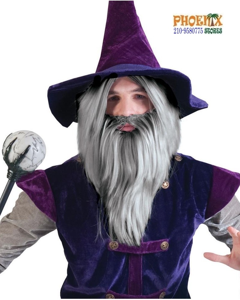 Αποκριάτικη πεpoύκα μάγου γκρί με μούσια-μουστάκι.