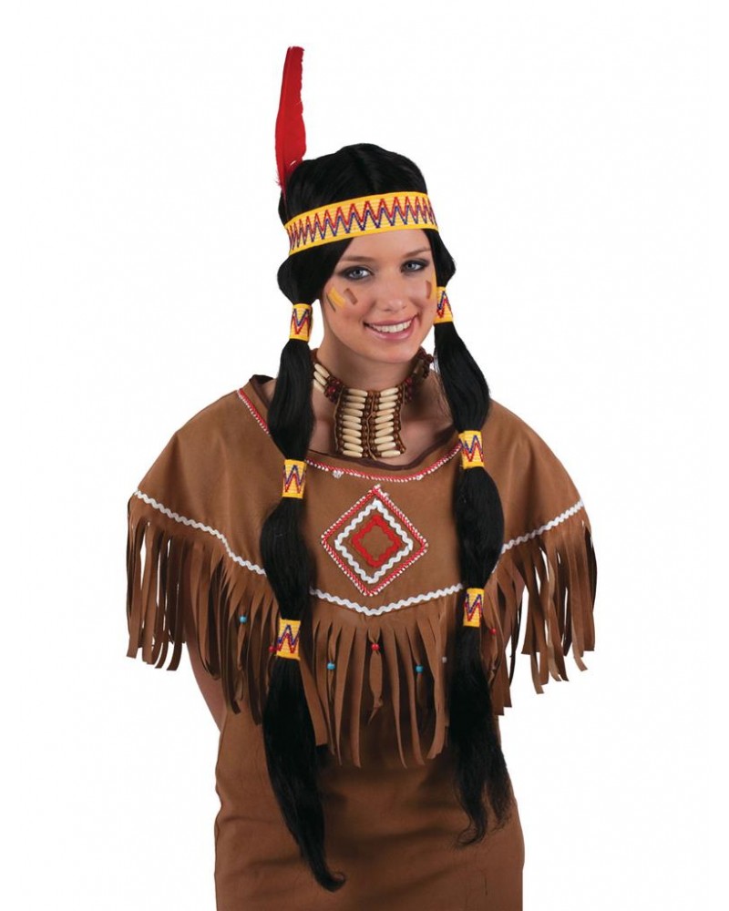 Αποκριάτικη πεpoύκα Ινδιάνας με κοτσίδες και διακοσμητικά.