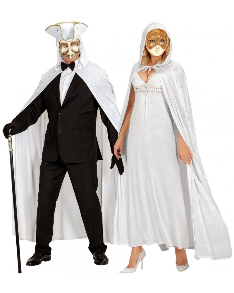 Αποκριάτικη Στολή Κάπα Ντόμινο Λευκή Με Κουκούλα.