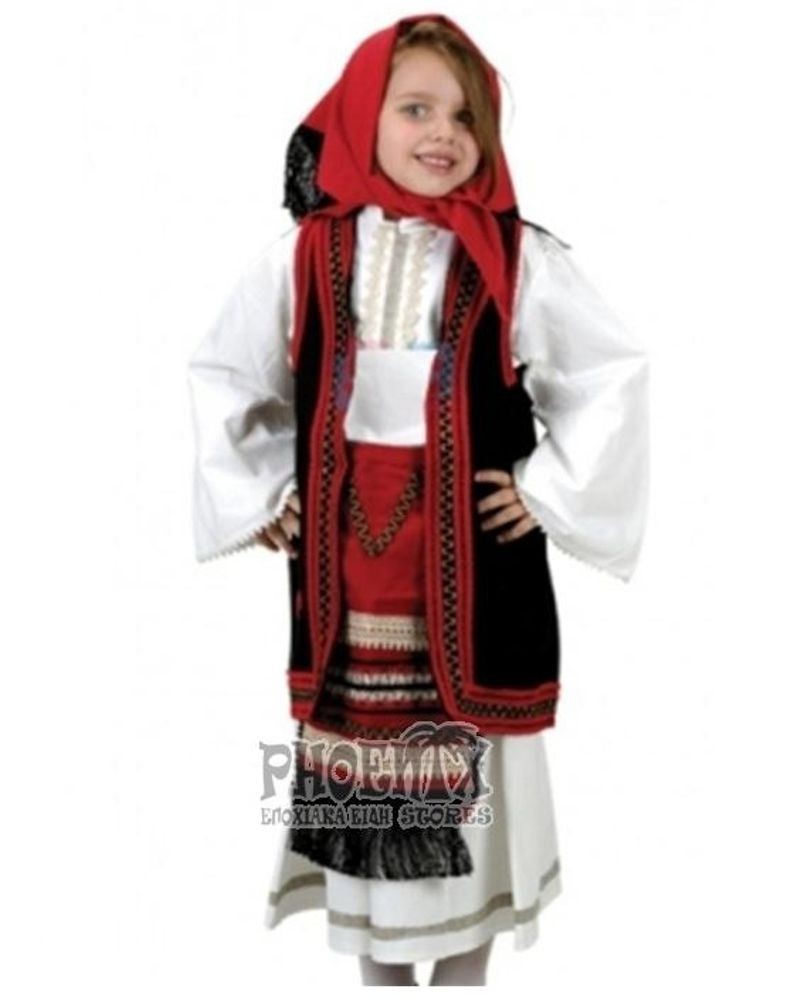 Περιλαμβάνει φούστα, πουκάμισο, γιλέκο, ποδιά κ΄μαντίλι.