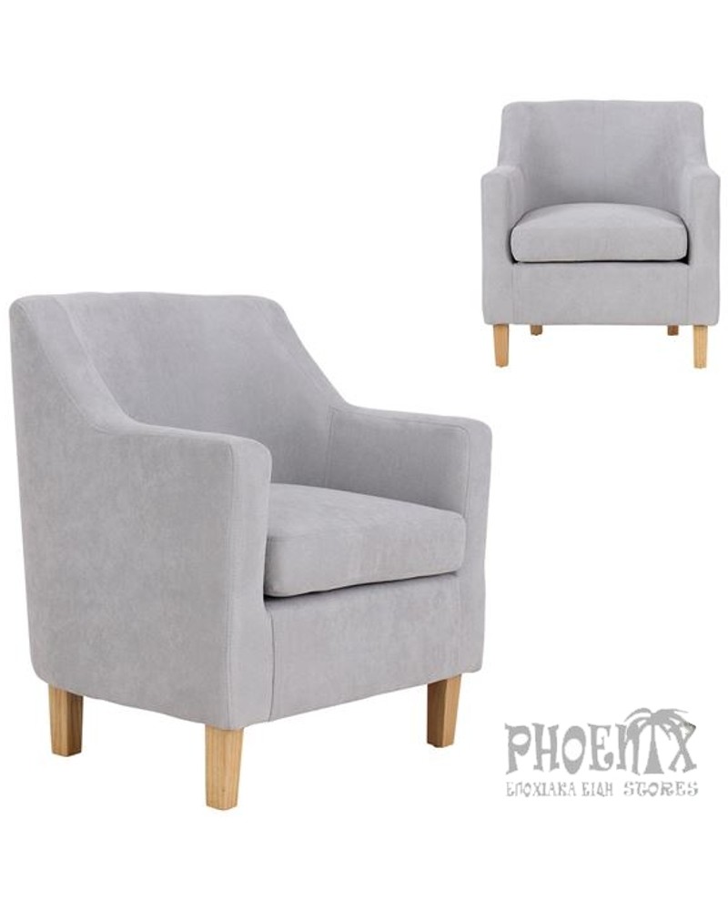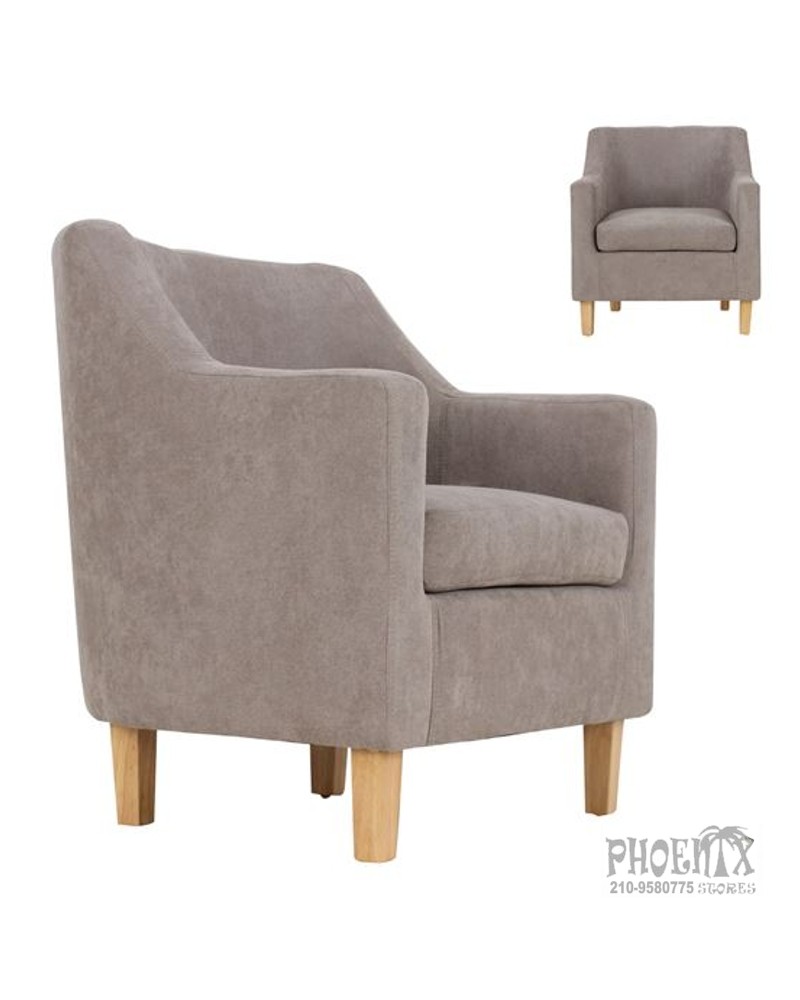 Πολυθρόνα σαλονιού από ύφασμα σε 3 χρώματα: ανοιχτό γκρι, ανοιχτό καφέ και βεραμάν.