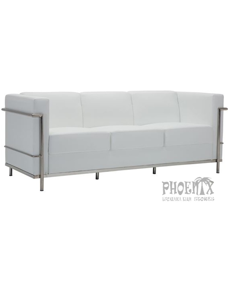 3θέσιος Καναπές Inox,Άσπρος, Δερματίνι