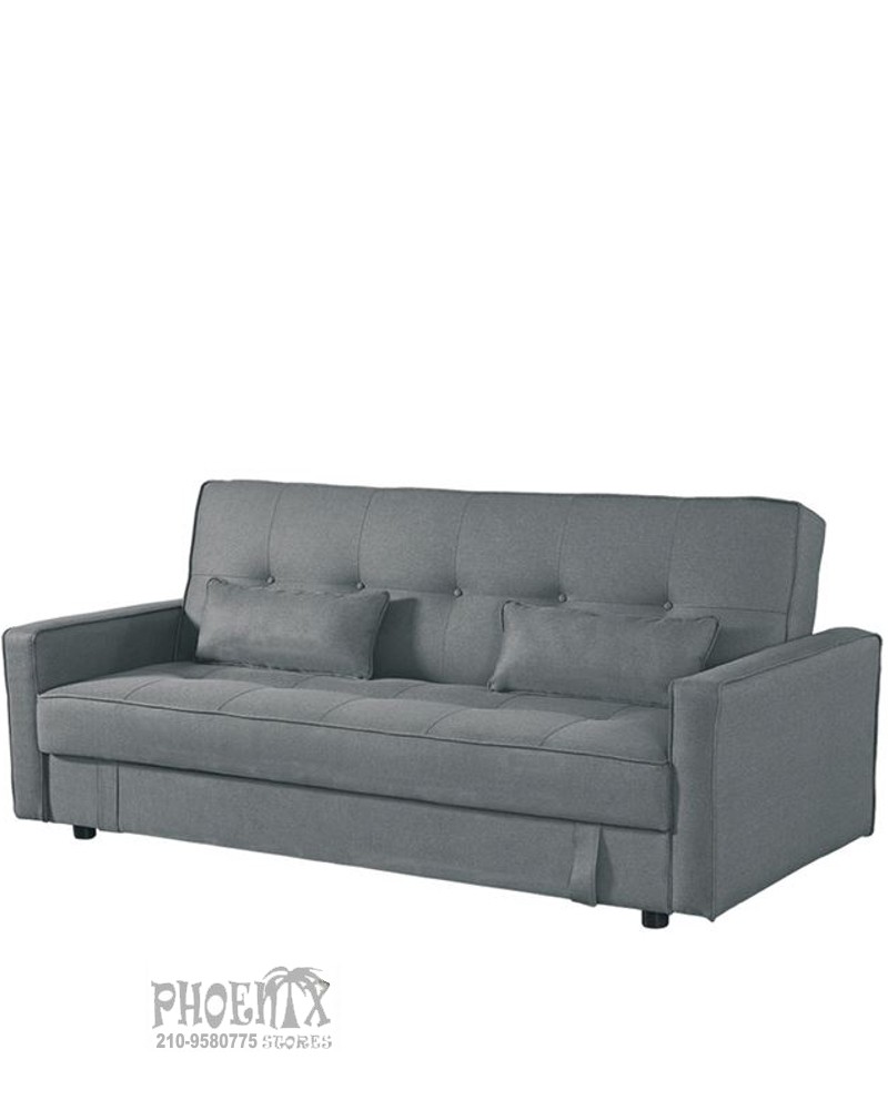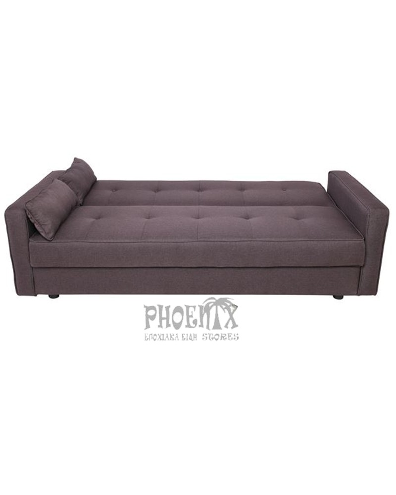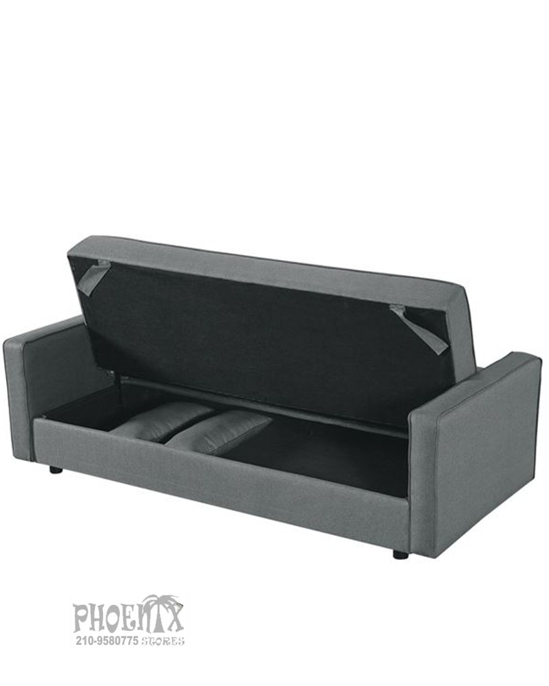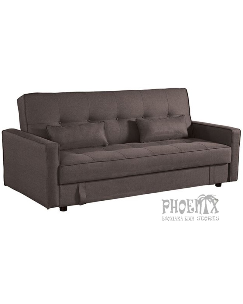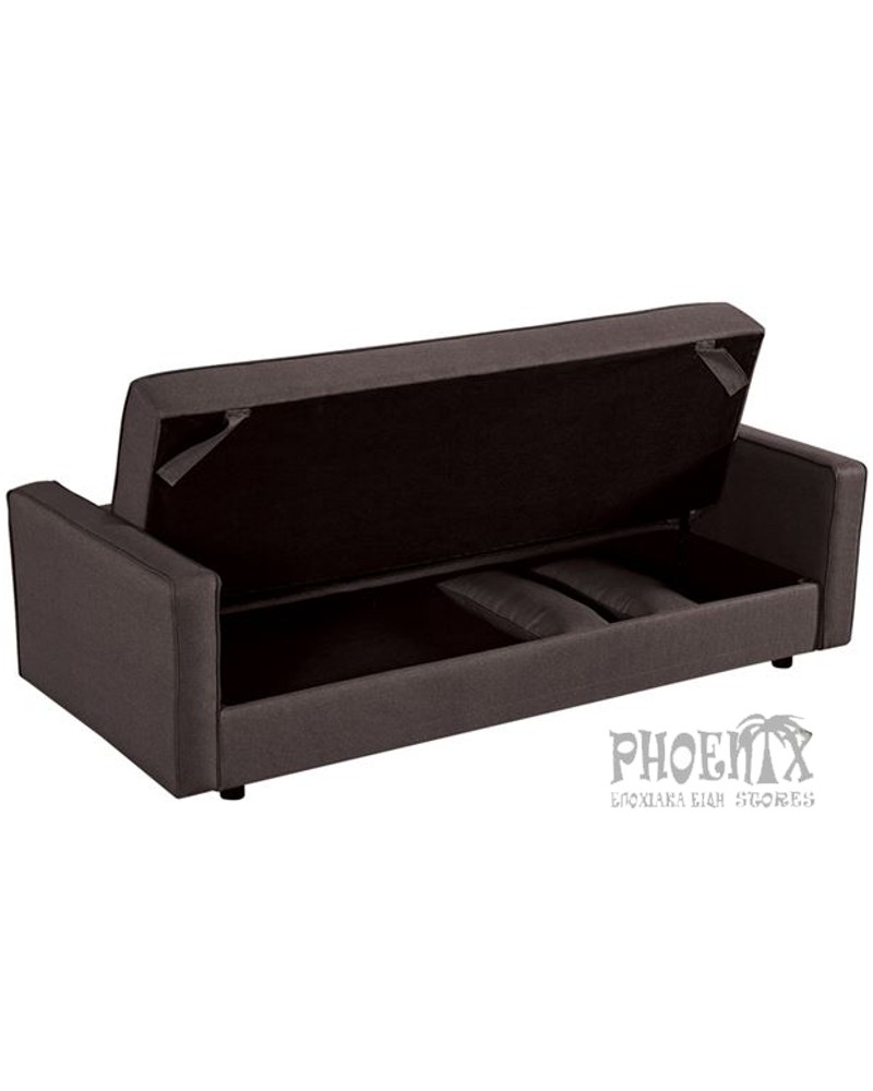 3θέσιος Καναπές-Κρεβάτι με χώρο αποθήκευσης, σε ύφασμα γκρί και καφέ χρώμα.