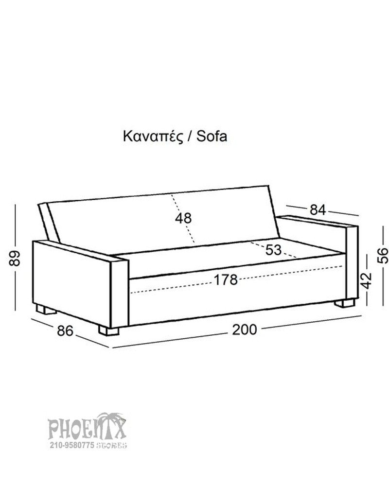 Κάθισμα :Μήκος : 178cm, Βάθος : 53cm, Ύψος : 42cm
