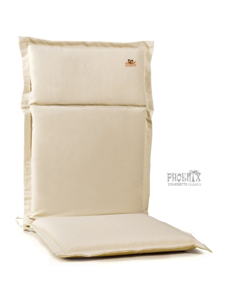 Μαξιλάρι πολυθρόνας κήπου-βεράνατας με ψηλή πλάτη, φερμουάρ (ώστε να πλένεται εύκολα) και ύφασμα αδιαβροχοποιημένο με γέμιση από αφρό πολυθουρεθάνης.