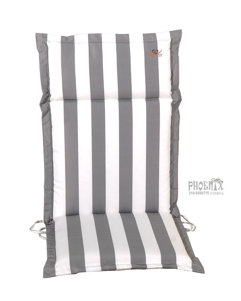 Μαξιλάρι πολυθρόνας κήπου-βεράντας με ψηλή πλάτη, φερμουάρ (ώστε να πλένεται εύκολα) και ύφασμα αδιαβροχοποιημένο με γέμιση από αφρό πολυθουρεθάνης.