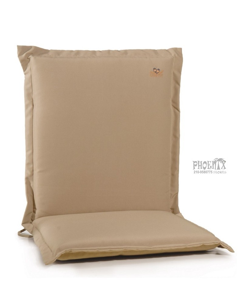 Μαξιλάρι πολυθρόνας κήπου-βεράντας με χαμηλή πλάτη, φερμουάρ (ώστε να πλένεται εύκολα) και ύφασμα αδιαβροχοποιημένο με γέμιση από αφρό πολυθουρεθάνης.