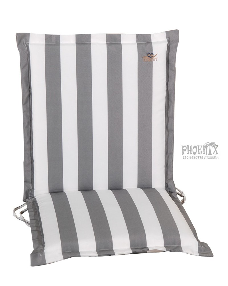 Μαξιλάρι πολυθρόνας κήπου-βεράντας με χαμηλή πλάτη, φερμουάρ (ώστε να πλένεται εύκολα) και ύφασμα αδιαβροχοποιημένο με γέμιση από αφρό πολυθουρεθάνης.