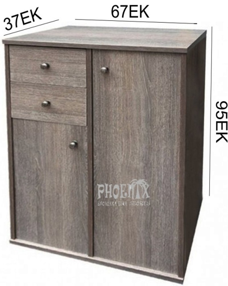 Έπιπλο σε γκρί χρώμα με 2 συρτάρια και 2 ντουλάπια με ράφια στο εσωτερικό του.
