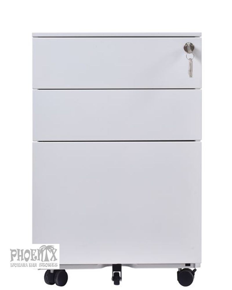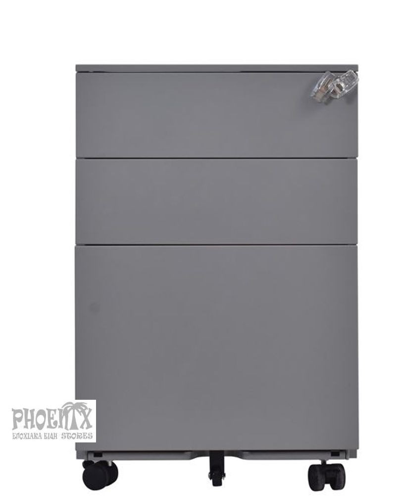 Λευκή, γκρί και μαύρη με κλειδαριά, 3 συρταριών.