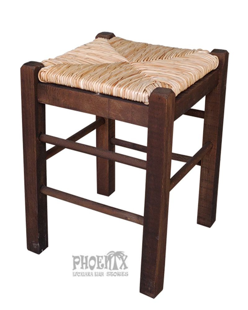 Σκαμπό ξύλινο οξιάς, εμποτισμού, 44cm ύψος, σε καρυδί χρώμα, με ψάθα.