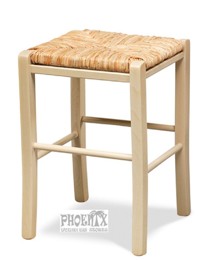 Σκαμπό ξύλινο οξιάς, εμποτισμού, 50cm ύψος, σε χρώμα φυσικό, με ψάθα.