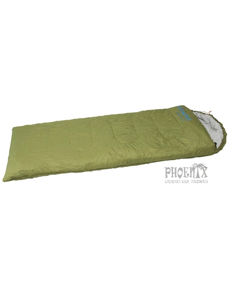 Υπνόσακος [sleeping bag] με μαξιλάρι, διατίθεται σε 8 χρώματα: μαύρο, γκρι, μπλε, κίτρινο, λαδί, γαλάζιο, λαχανί, και πορτοκαλί.