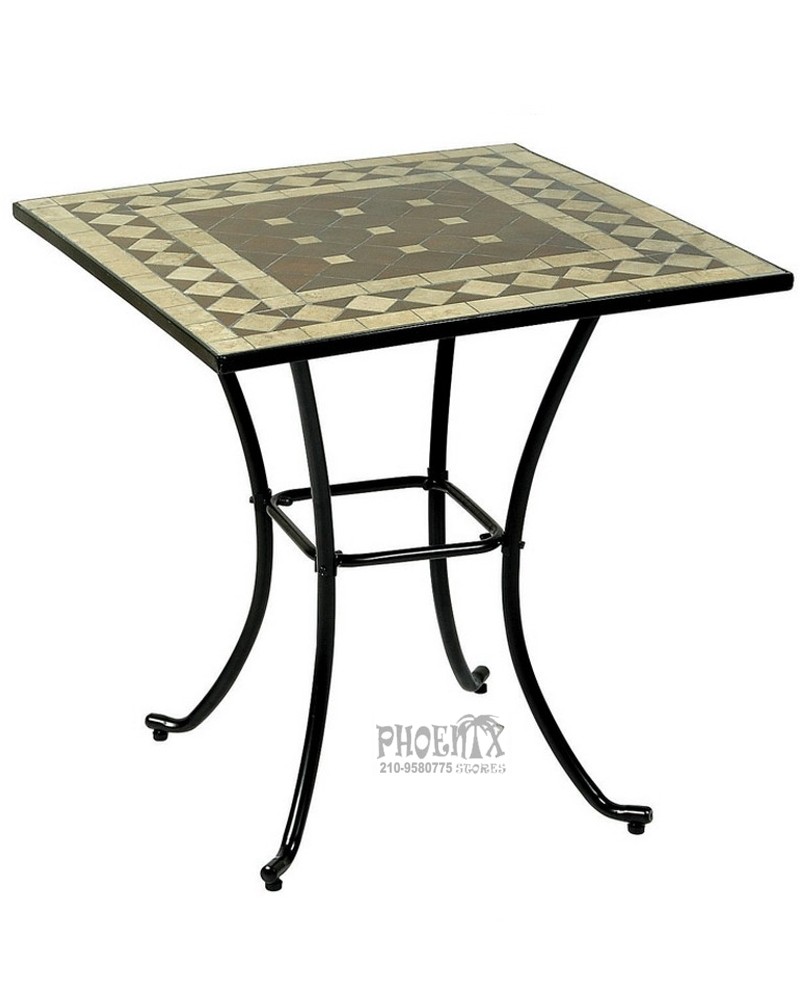 Τραπέζι τετράγωνο 70χ70εκ μεταλλικό με μωσαικό[πέτρινο].