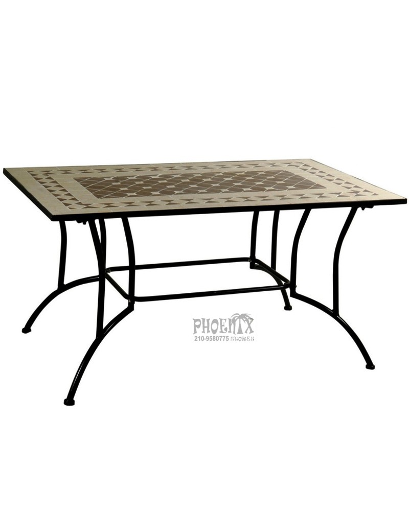 Τραπέζι παραλληλόγραμμο 120χ80εκ μεταλλικό με μωσαικό [πέτρινο] σε 3 μεγέθη: