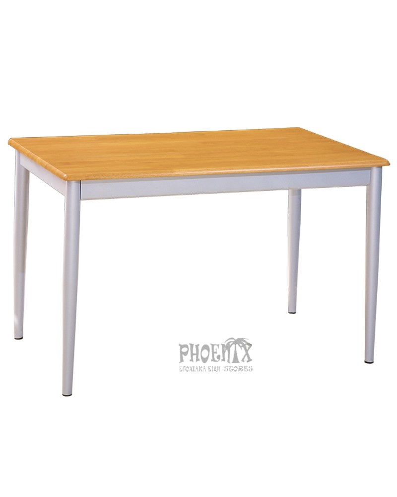 Τραπέζι μεταλλικό με ξύλινο καπάκι σταθερό, με πόδια βαμμένα σε γκρι χρώμα και καπάκι σε φυσικό.