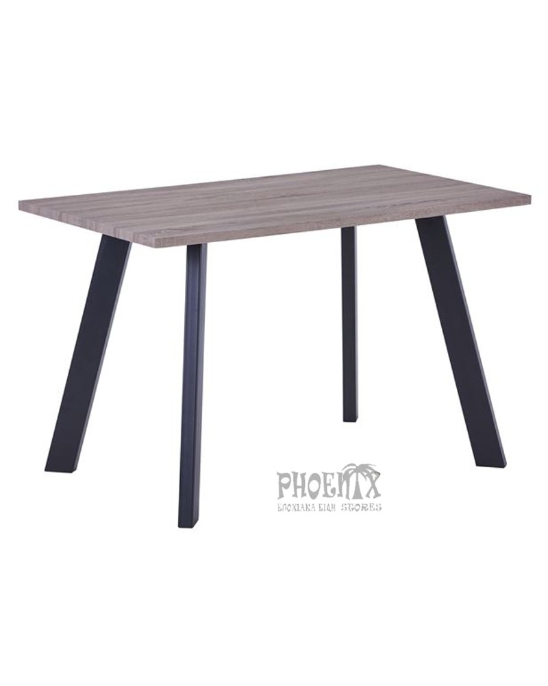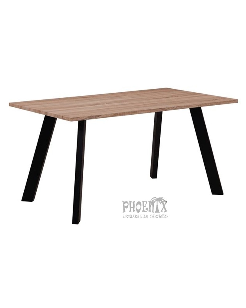 Τραπέζι τραπεζαρίας ή κουζίνας παραλληλόγραμμο με μεταλλικά πόδια μαύρα και ξύλινη επιφάνεια σε 3 χρώματα: ανθρακί, cappuccino, και sonoma.