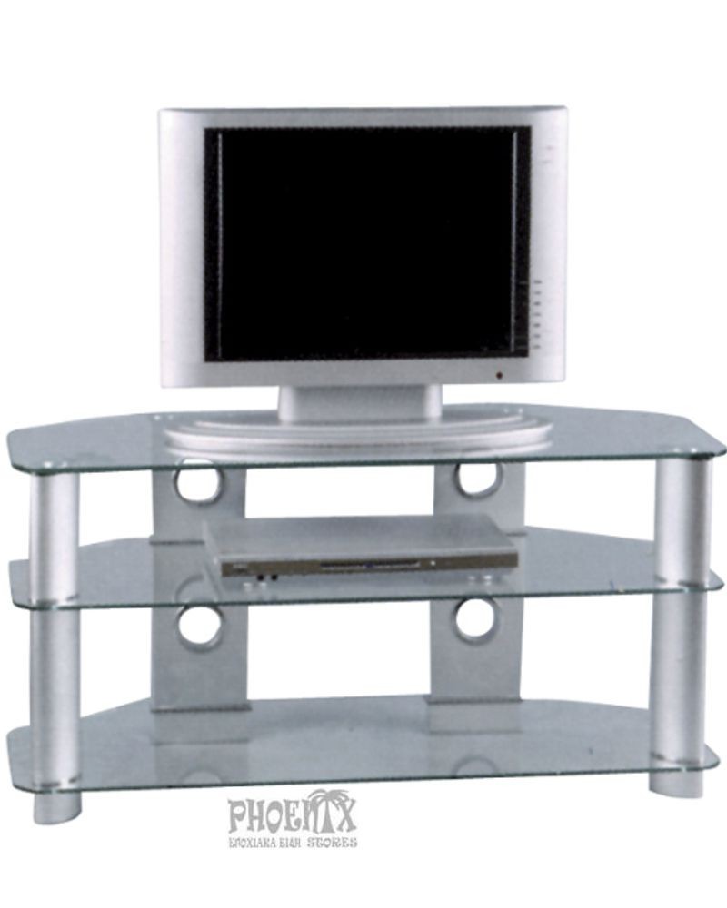 Έπιπλο τηλεόρασης 100x45 με ύψος 50cm μεταλλικό, με διάφανα κρύσταλλα και οβάλ αλουμινένια κολωνάκια.