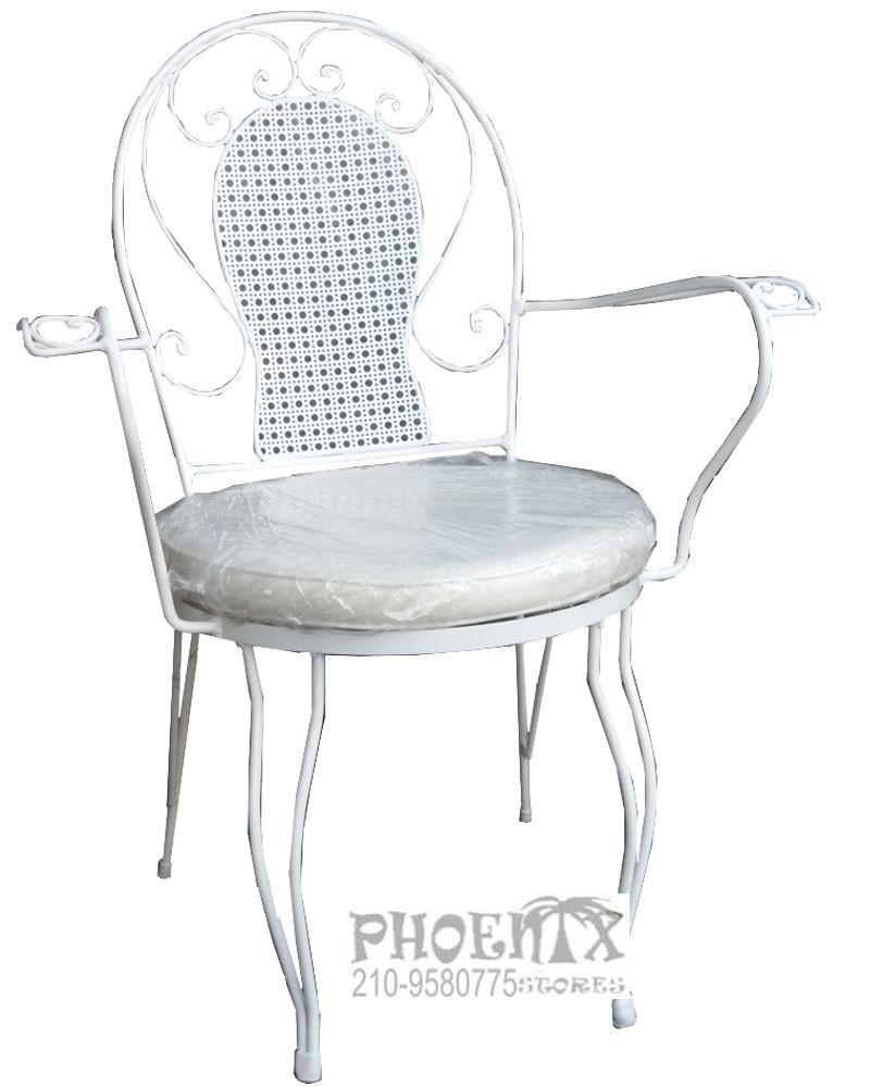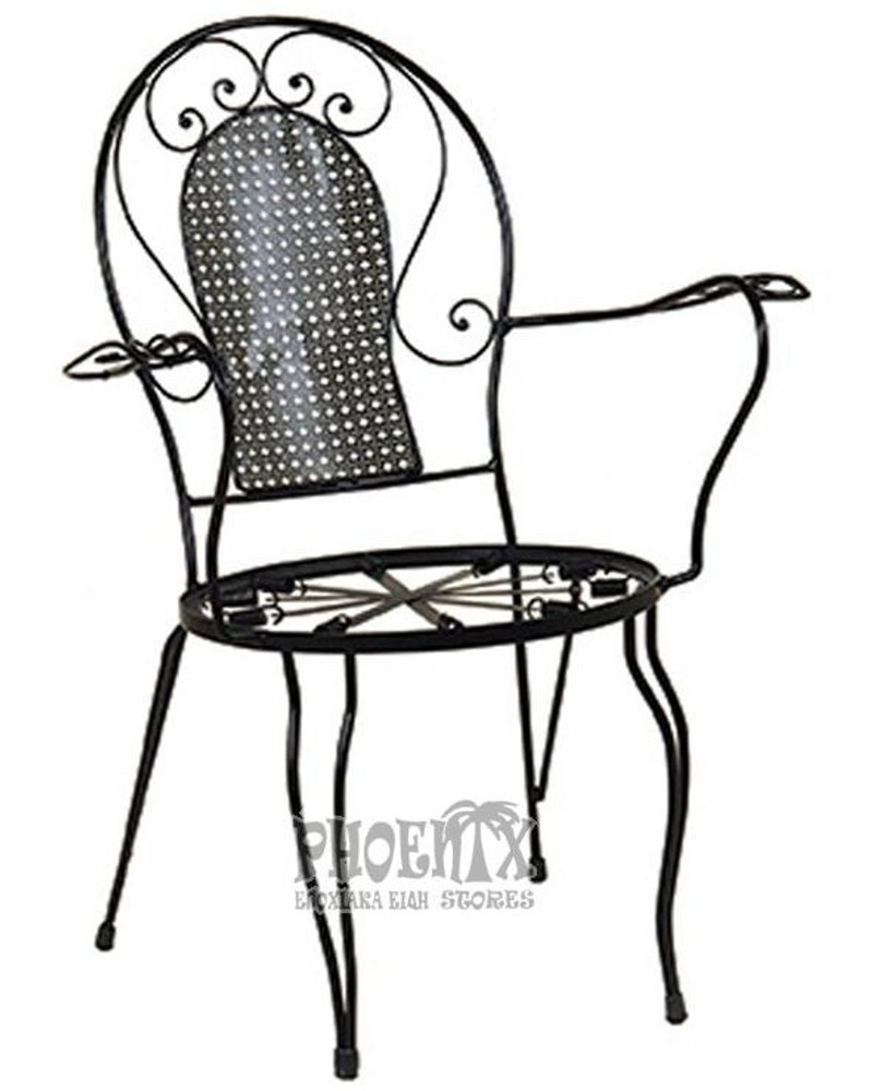 Πολυθρόνα μεταλλική γαλβανιζέ μασίφ fer forge, εξαιρετικής ποιότητας και αντοχής, σε 4 διαφορετικά χρώματα (μαύρο, λευκό, μπλε ματ, πράσινο ματ) ελληνικής κατασκευής.