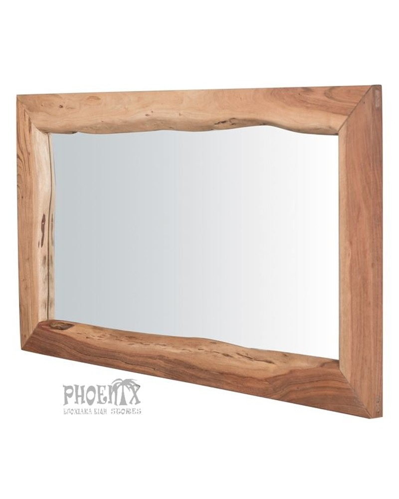 Καθρέπτης τοίχου με σκελετό από ξύλο ακακία σε χρώμα φυσικό.