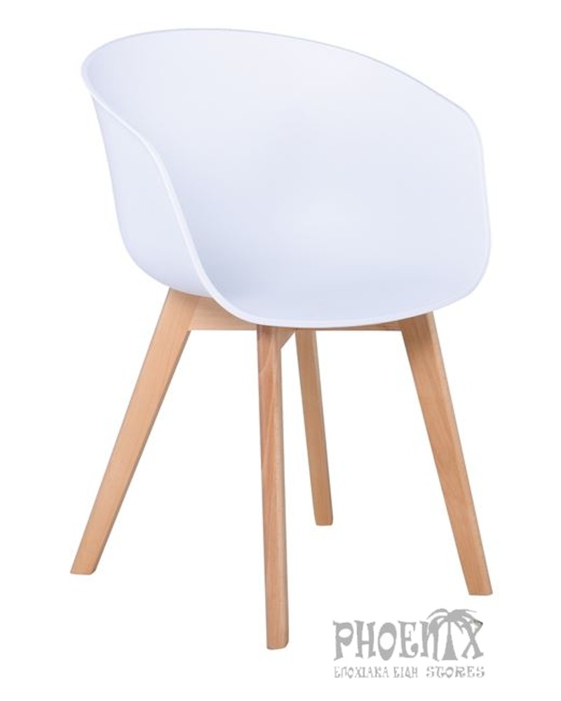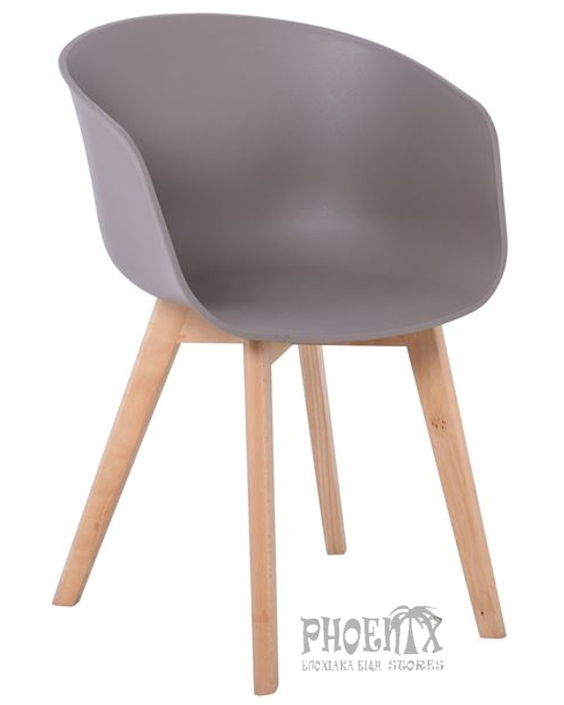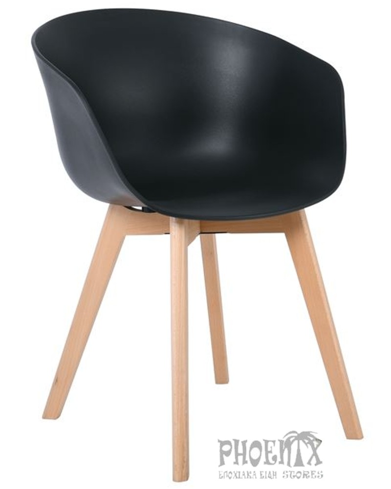 Καρέκλα ξύλινη με πολυπροπυλένιο σε χρώμα μαύρο, άσπρο και μπεζ άμμου