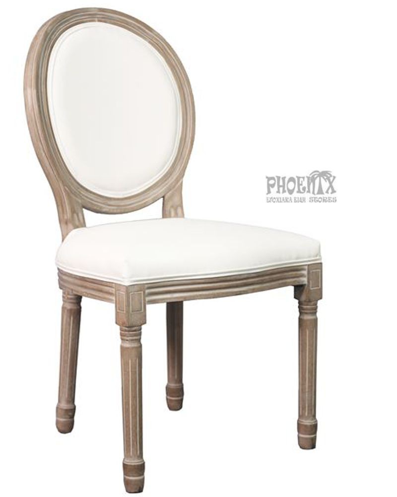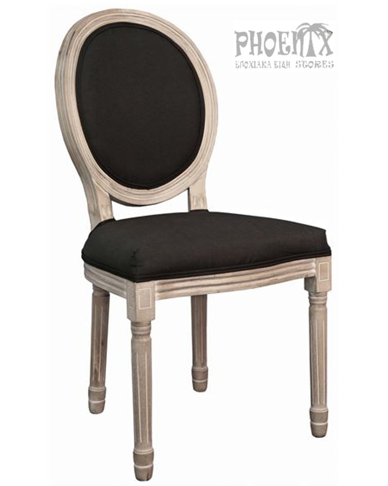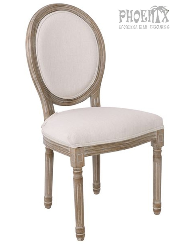 Καρέκλα decape με ύφασμα- δερματίνη σε εκρού, μαύρο και λευκό.