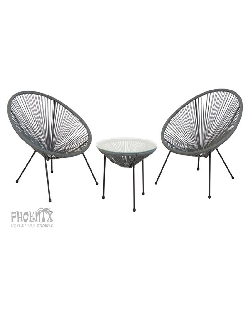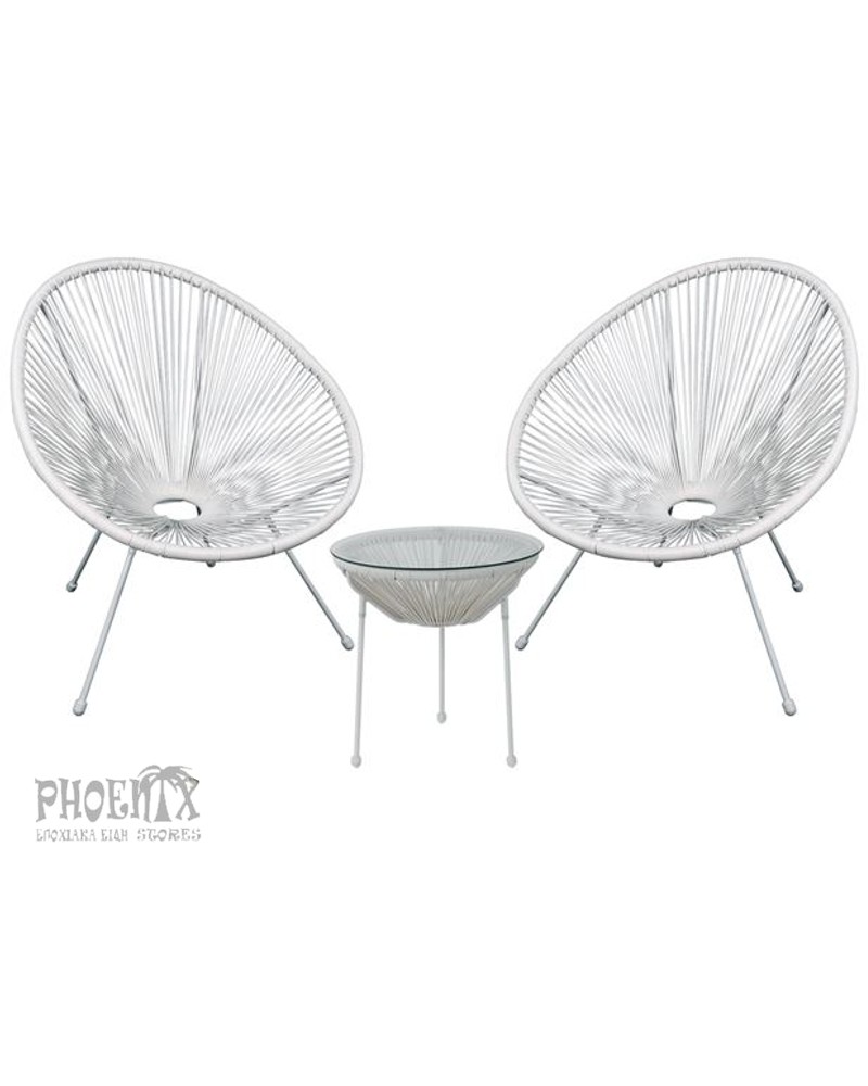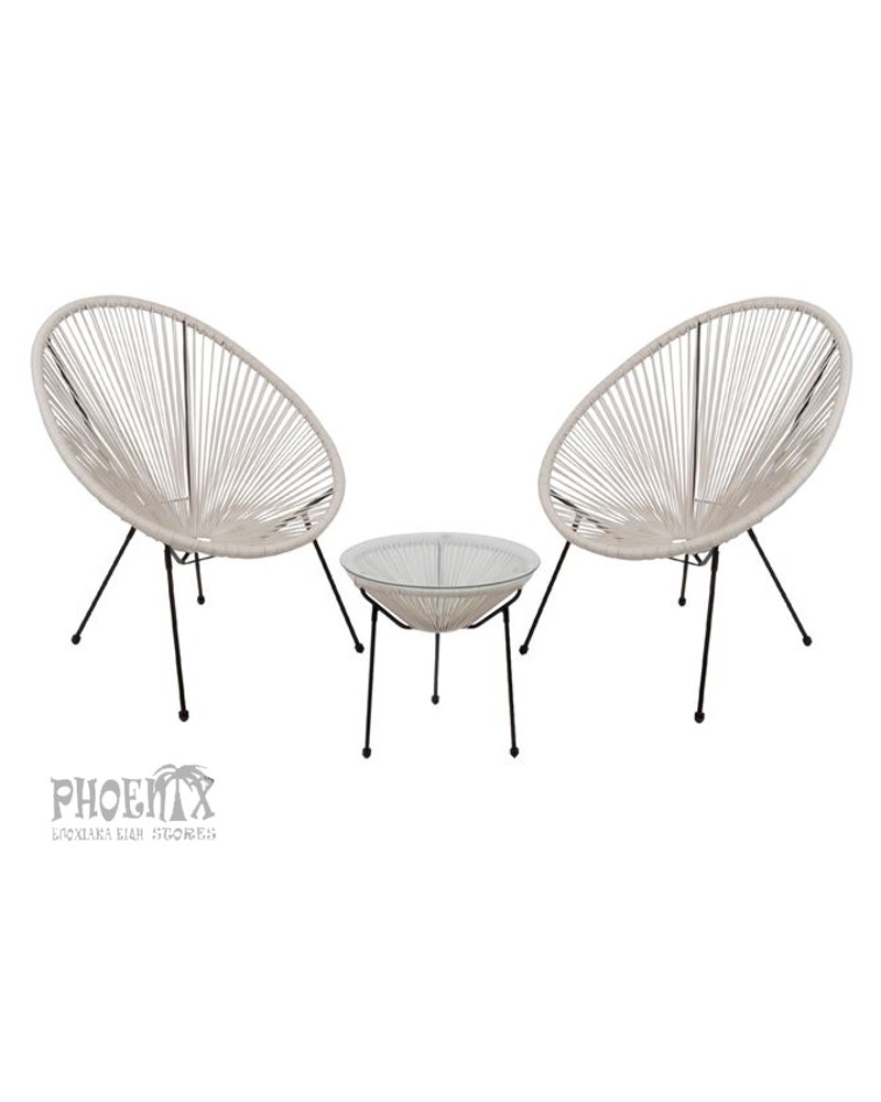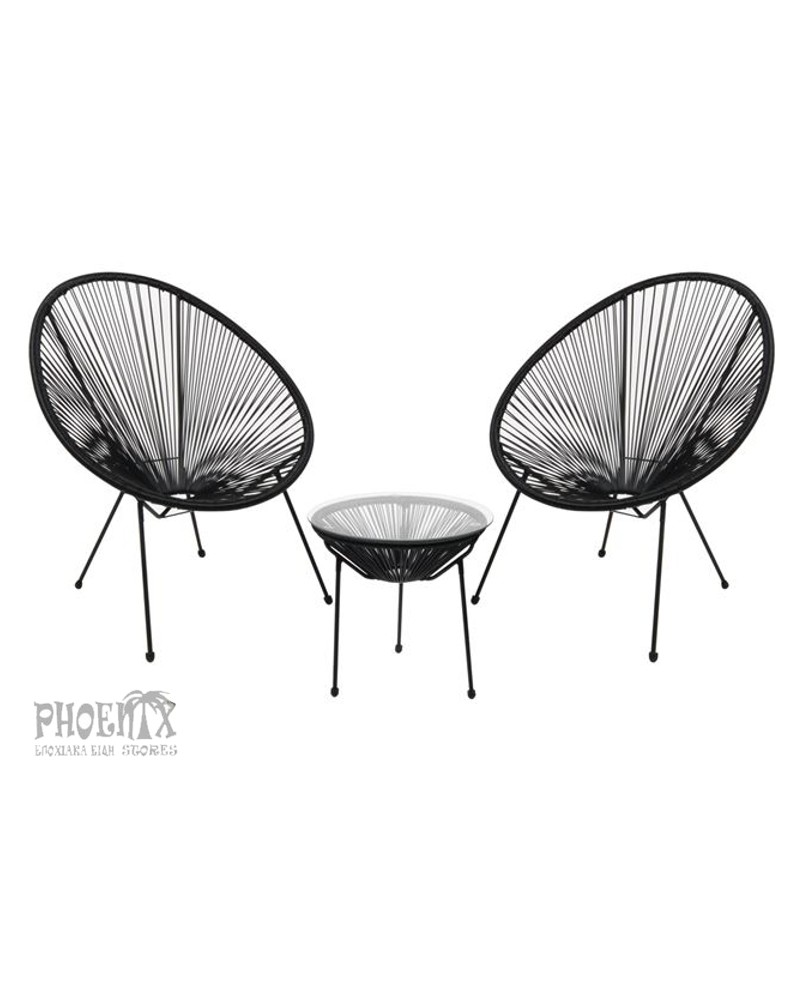 Αποτελείται από: Τραπεζάκι Φ.50cm με τζάμι και Plastic Rattan,