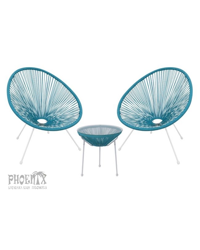 Set κήπου-βεράντας σε 5 διαφορετικούς χρωματικούς συνδυασμούς: λευκό-λευκό, μαύρο-μαύρο, ανθρακί-μαύρο, ciel-λευκό και cappuccino-άσπρο.